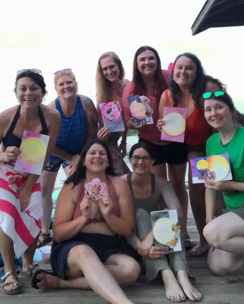 Sign up for a class or join a group. This photo is from a full moon women’s circle my friend Shannon hosted. We made full moon intention cards for ourselves. Most town have some sort of creative center that offers different classes or groups you can join. Taking a class is a great way to expand your creative skill, learn new techniques to play with, and meet other creatively inclined people to expand your creative circle.