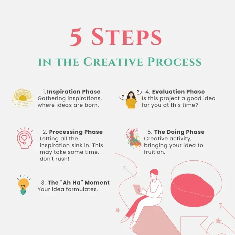 The action or creating phase often sparks a new idea and the process starts again! We often work through the above steps subconsciously. We are not always aware of the process. Each step of the process may even look different for each person. For instance one person may derive inspiration from nature while another is inspired by a visit to a local gallery. We may formulate an idea instantly or we may ruminate on an inspiration for a while before an idea comes. The evaluation phase may cause us to pause, it may even cause fear. “Am I really capable of creating my idea?” This fear can be paralyzing, but pushing yourself on to the next stage is imperative. It is in the doing stage that your creativity grows and expands. Your confidence blooms with each creative activity.