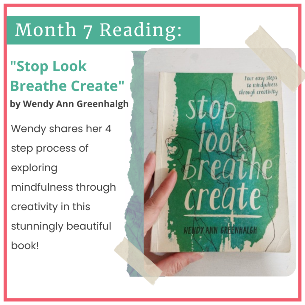 Take time to pause and notice. We tend to move through life quickly, and in doing so we miss a lot of small moments. As you create mindfully, I encourage you to pause, move slowly, and notice all of the little things that are easily missed. Notice the textures and the colors around you. Notice the way one paint color blends with its neighbor color, or the patterns that emerge as you create. Slowing down can help you to stay present with the experience of creating.