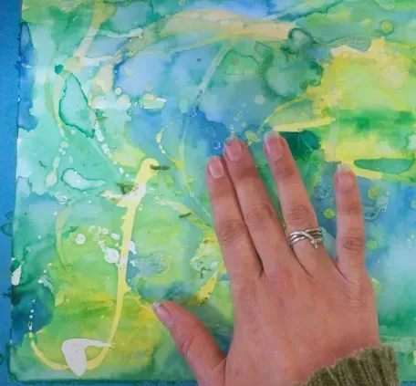 Drizzle more rubber cement across your newly painted surface. Dry completely.