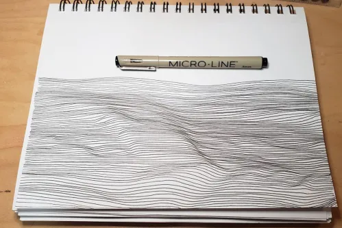 With your next inhale reset your pen/pencil to the left side directly under the first line. As you exhale drag your pen/pencil again across the page matching your breath. Allow this line to mimic the previous line following any dips or peaks.