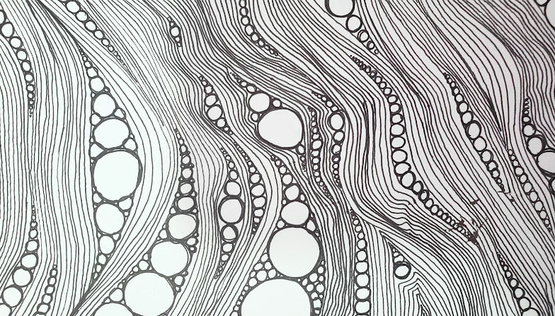 Perhaps you try drawing circles instead of straightish lines, perhaps you draw shapes to fill in or curved lines. Try adding a color wash or a background before you draw your lines. I love to use black ink in my backgrounds and then draw my lines with a white gel pen. What else can you come up with? The sky is the limit!