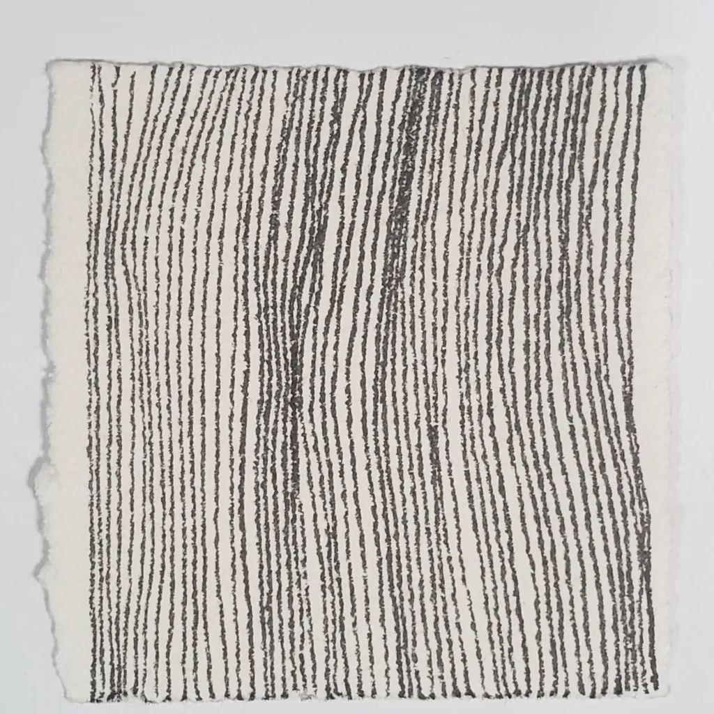 Draw with your breath. Allow your hand to match your breath as you draw simple lines. I like to draw my lines on my exhale, using my inhales to reset my pen for the next line. Follow your own instincts as you draw. Allow yourself to play with other ideas that come to you.