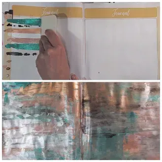 (IMG: Journal Spread)Start by creating a background page. You can use any process art technique that you like. Not sure what to do? Try one of these ideas: